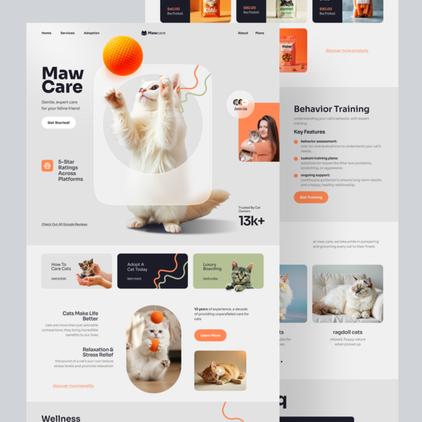 Mawcare , Figma Cat Care Website Landing page UI Design with Mobile Responsive
